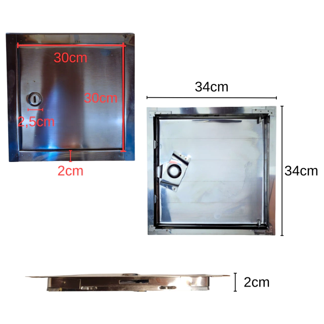 - Tapa con Puerta y Marco de Acero Inoxidable.
